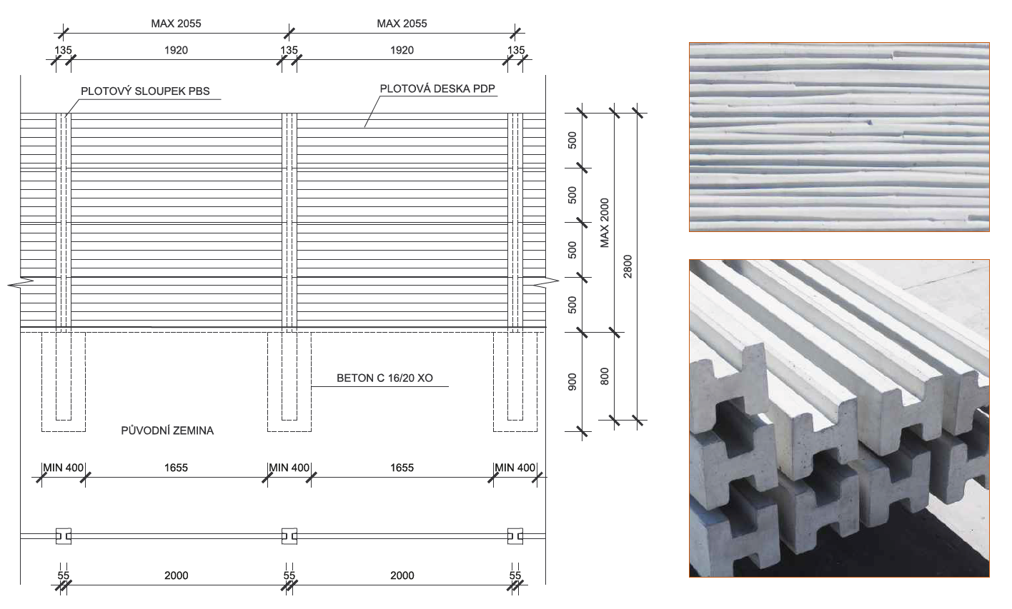 Osazené sloupky obetonujeme betonem min. třídy C16/20 a beton řádně zhutníme. Po zatuhnutí betonu osadíme plotové desky do drážek sloupku.