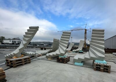 Schodišťové dílce vyrábíme v kvalitních formách s důrazem na přesnost provedení. Každý prvek je připravený k okamžité montáži, to výrazně zkracuje dobu realizace stavby a snižuje náklady na pracovní sílu.