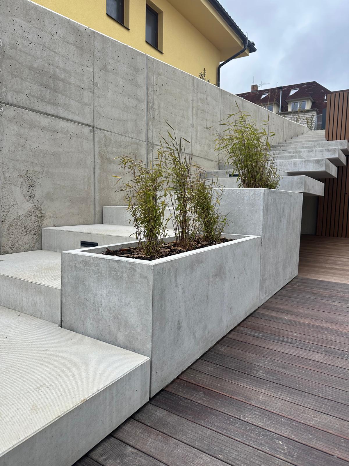 - Estetické možnosti – nabízíme pohledový beton v různých barevných variantách, případně kombinace s kovem, sklem nebo dřevem včetně implementovaného osvětlení.